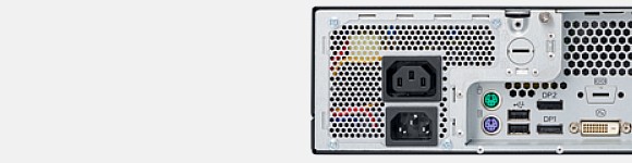 Levá zadní část, konkrétně asi třetina stolního počítače je vyhrazena napájecímu zdroji. Jeho součástí může být dokonce konektor pro připojení monitoru, i taková verze Fujitsu Esprimo D738 vstoupila na trh. Co se týče samotné konektorové výbavy, začíná dvěma PS/2 konektory určenými pro klávesnici a myš. Dále budete mít k dispozici dva porty USB 2.0 typu A, na které navazuje dvakrát DisplayPort. Z grafických konektorů nechybí ani DVI, takže o připojení více monitorů různými způsoby nebudete mít nouzi. Tuto sestavu pak uzavírají čtyři porty USB 3.0 typu A, síťový konektor RJ-45 a audio konektory Line-In a Line-Out. V rámci volitelných portů lze zmínit například VGA nebo sériový port. Ty však nejsou standardem základní verze stolního počítače.