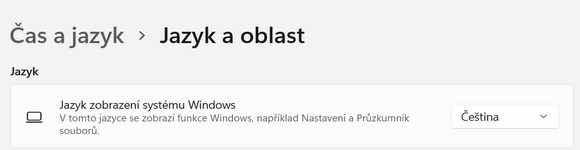 Když se dostanete do nastavení jazyka operačního systému Windows 11 bude vás zajímat především horní oblast Jazyk. Ihned na první pohled vidíte, jaké jazykové sady máte nainstalované ve svém systému. Ve výchozím stavu uvidíte češtinu a angličtinu. Právě mezi těmito jazyky můžete přepínat nejenom celé jazykové prostředí operačního systému Windows 11, ale také pouze klávesnici, potažmo rozložení kláves.