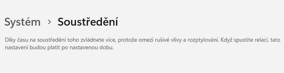 Když spustíte aplikaci Hodiny, hned na úvodní straně v kategorii Čas na soustředění můžete opět spustit tento tichý režim, kde si mimo jiné definujete také přestávku během práce. Posledním místem, kde spustíte funkci Soustředění, je nastavení operačního systému Windows 11.